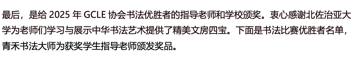 Congratulations to these winners and their teachers on their success from the GCLE 2nd Hard Pen Calligraphy Competition!